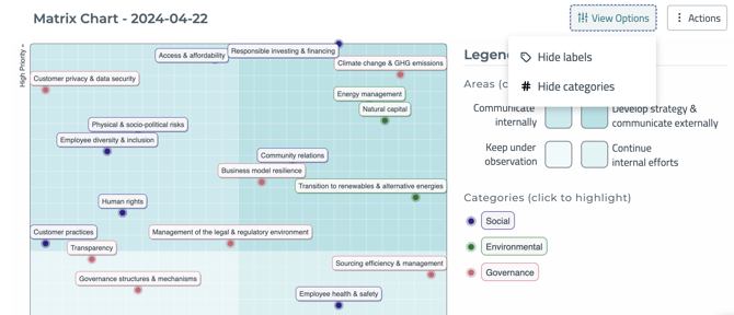 Because your Materiality Matrix is a key communication tool for gaining buy-in on strategic ESG actions, both internally and externally, Datamaran provides you with several tools to tailor it: